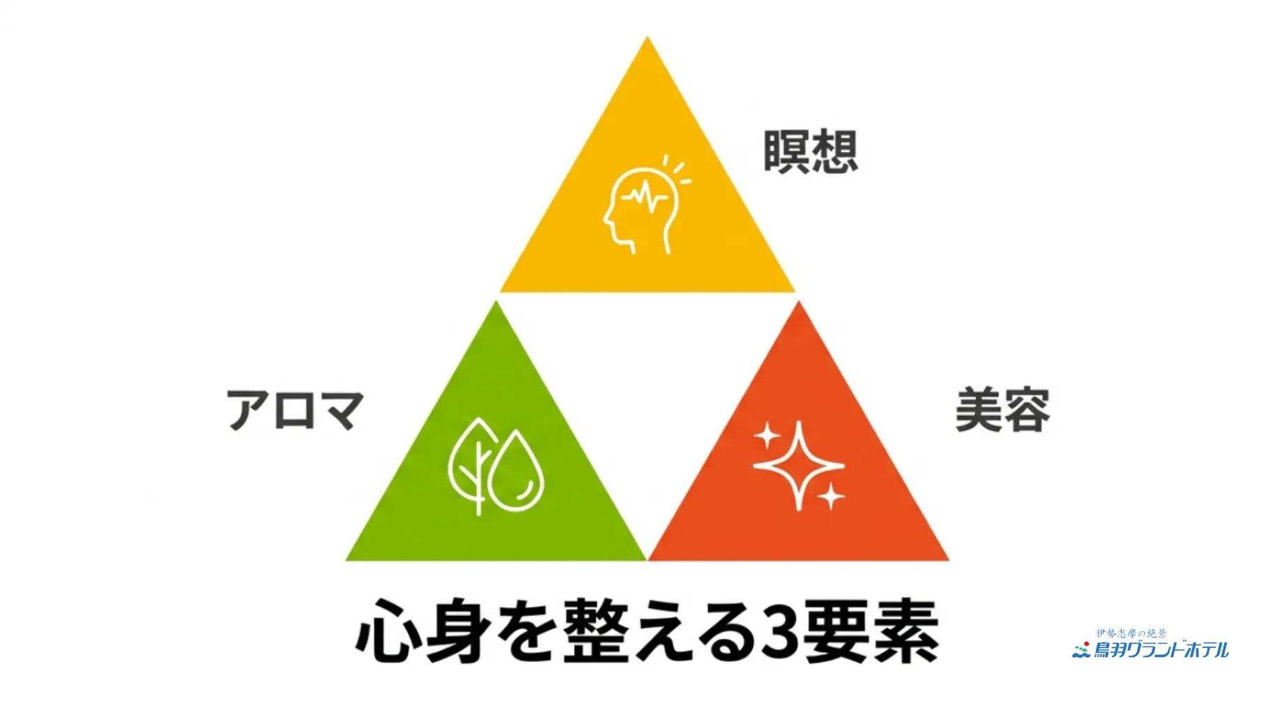 サウナ室という「外界から遮断された箱」は、自分自身の内面と向き合うための、この上ない瞑想(メディテーション)空間です。客室サウナでは、BGMを消し、視覚情報を最小限に抑えることで、普段は意識できない自分の「鼓動」や「呼吸」に集中することができます。