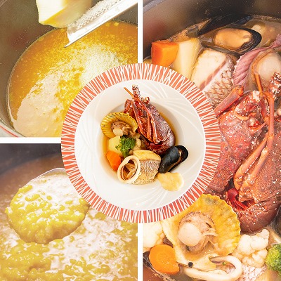 同梱の伊勢海老、鯛、ムール貝などを入れての簡単調理でホテルの味をお楽しみください。