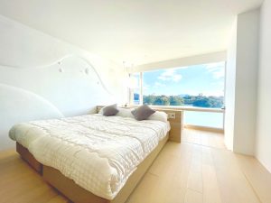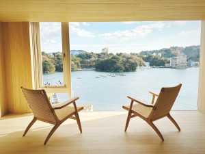 鳥羽の海の青さ・空の青さ・朝陽の橙色など、時間やその日によって変わる自然な風景をダイレクトに感じて頂けるよう、全面に大型ガラスサッシを使用。
