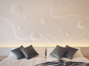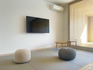 更に白で統一したお部屋内の漆喰の壁は、時間帯によって入り込む様々な色彩が、異なった色を部屋中に満たしてくれます。