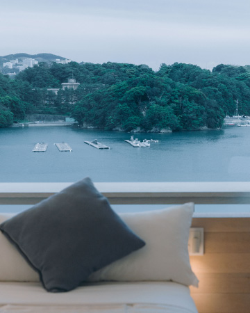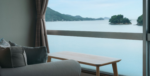 大きな窓から広がる鳥羽湾の眺望を、ゆったりとしたソファでお楽しみください。