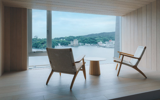 洗練されたフローリングの空間で、鳥羽湾の絶景を独占する上質な時間。