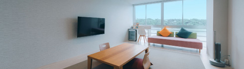 シンプルな美しさと機能性が調和した現代的な客室で、心地よい寛ぎをお過ごしください。