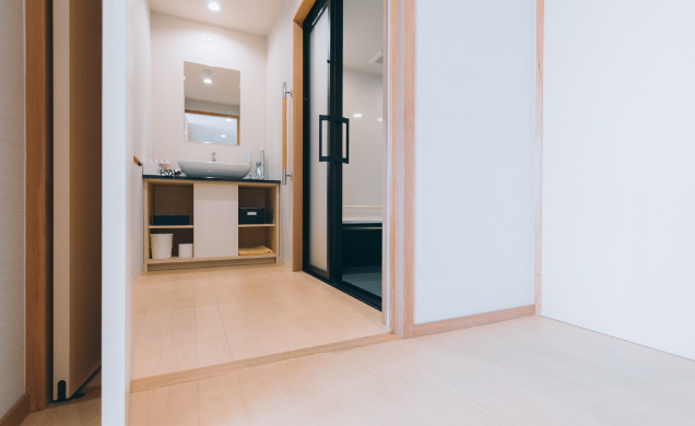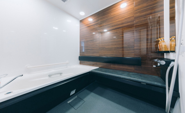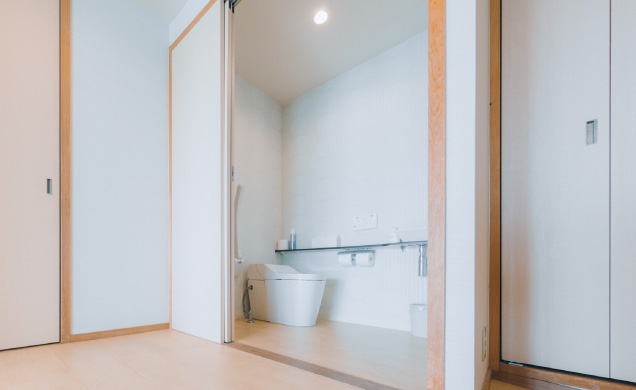 桜フロアの特別室内の1室は、車椅子のお客様にもご利用いただききやすい、導線やお風呂、トイレとなっております。