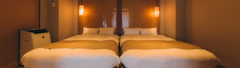 2022年にリニューアルされた琉球畳の小上がりに低めのツインベッドを配した上質な空間。